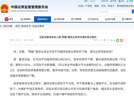 证监会新闻发言人2月5日就“两融”融资业务有关情况答记者问。